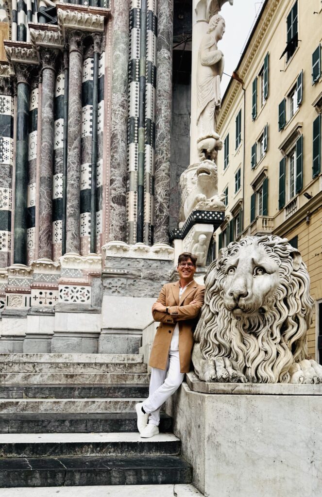 titkokkal és történetekkel van teli. A másik kihagyhatatlan látnivaló a város ikonikus dómja, a San Lorenzo székesegyház fekete-fehér csíkos homlokzattal és szomorú szemű kőoroszlánnal. Ha bejutottunk, érdemes nemcsak odabent, hanem odafent is alaposan körülnézni. Öt euróba kerül a jegy, amiért fölmászhatunk a lépcsőn a dóm tetejére. Szerintem onnan letekintve lehet igazán megérezni az egykor gazdag, rejtélyes és bűnös Genovát. Az égen sirályok visítanak, a közelben a kis tetőteraszok titkait láthatjuk, a távolban a